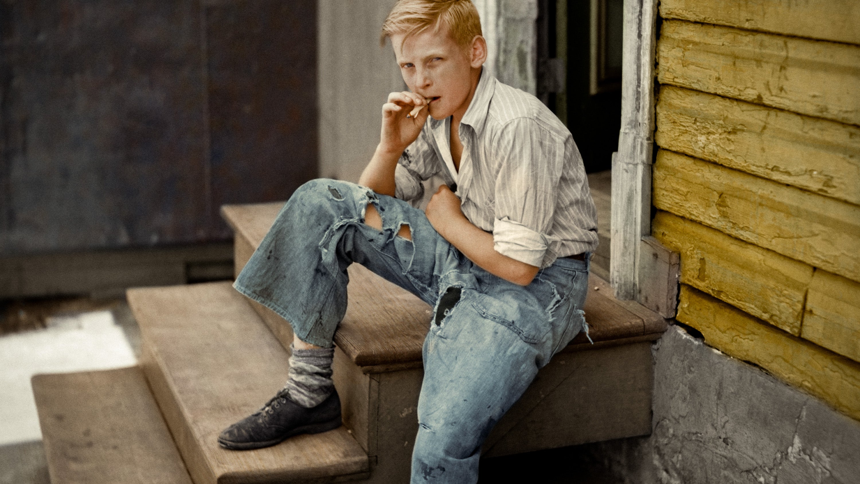 Smoking Boy, 1938, Colorized